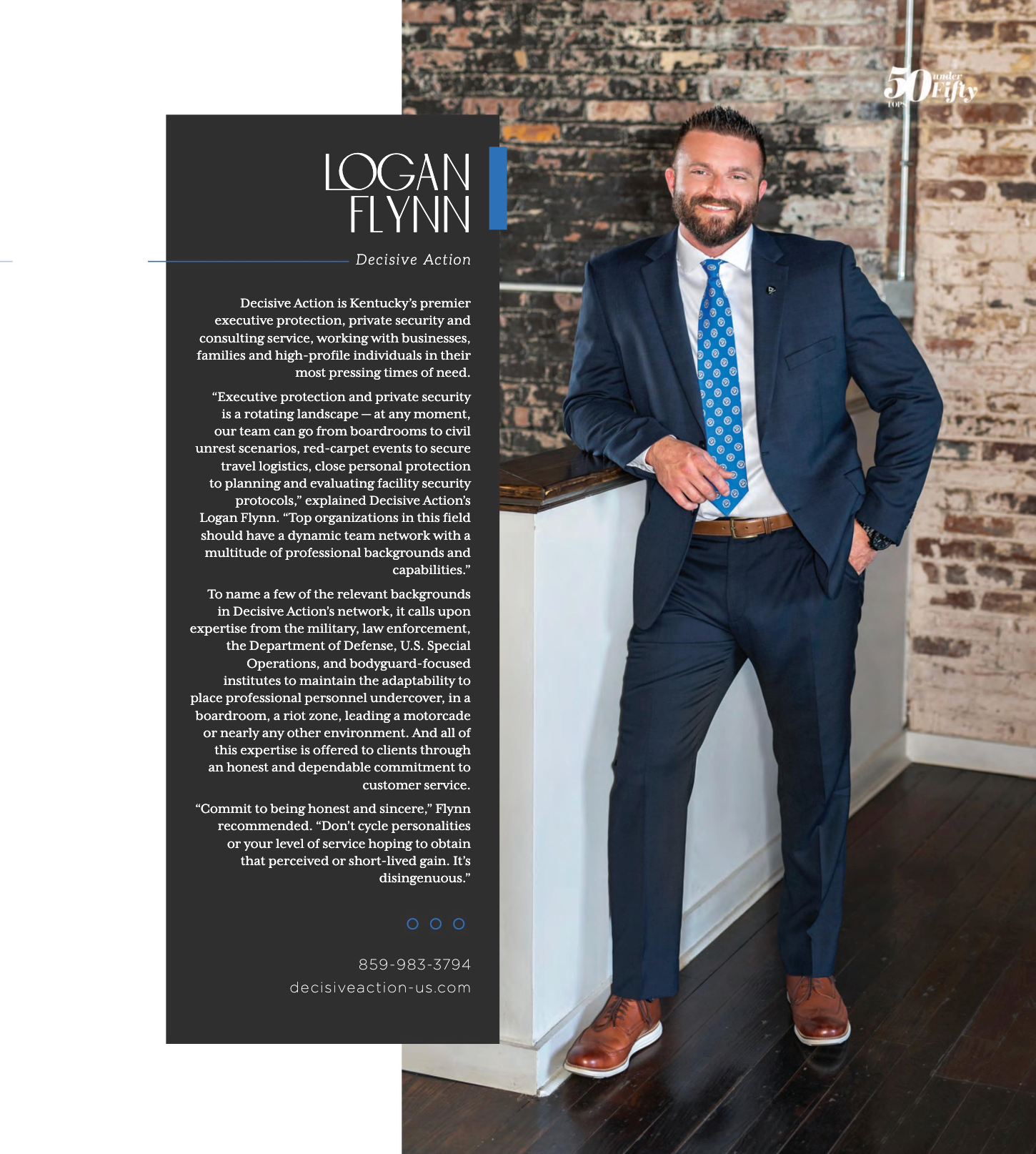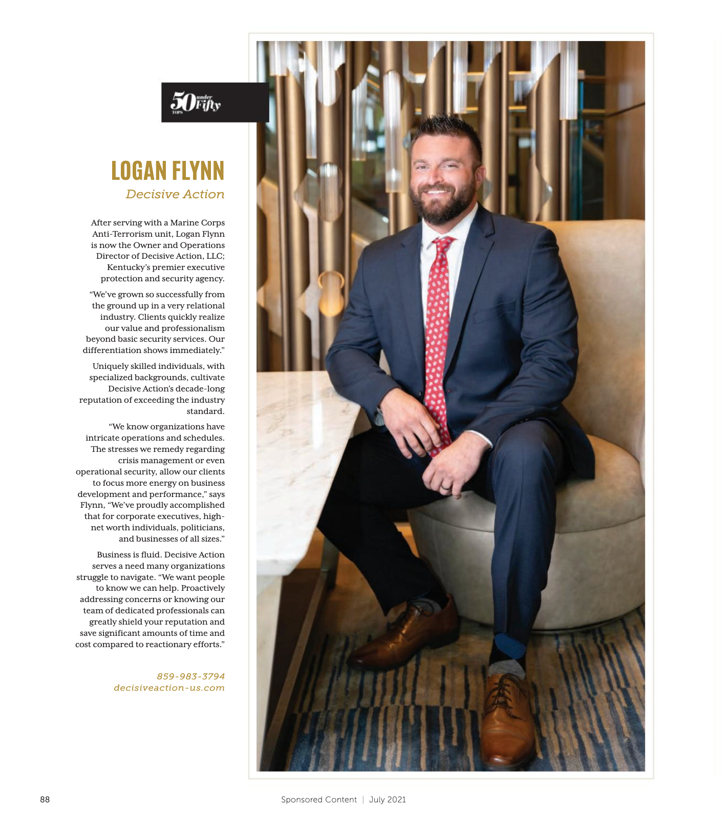 In the "50 under 50" issue, Logan and Decisive Action are highlighted along with other industry professionals throughout the Bluegrass.